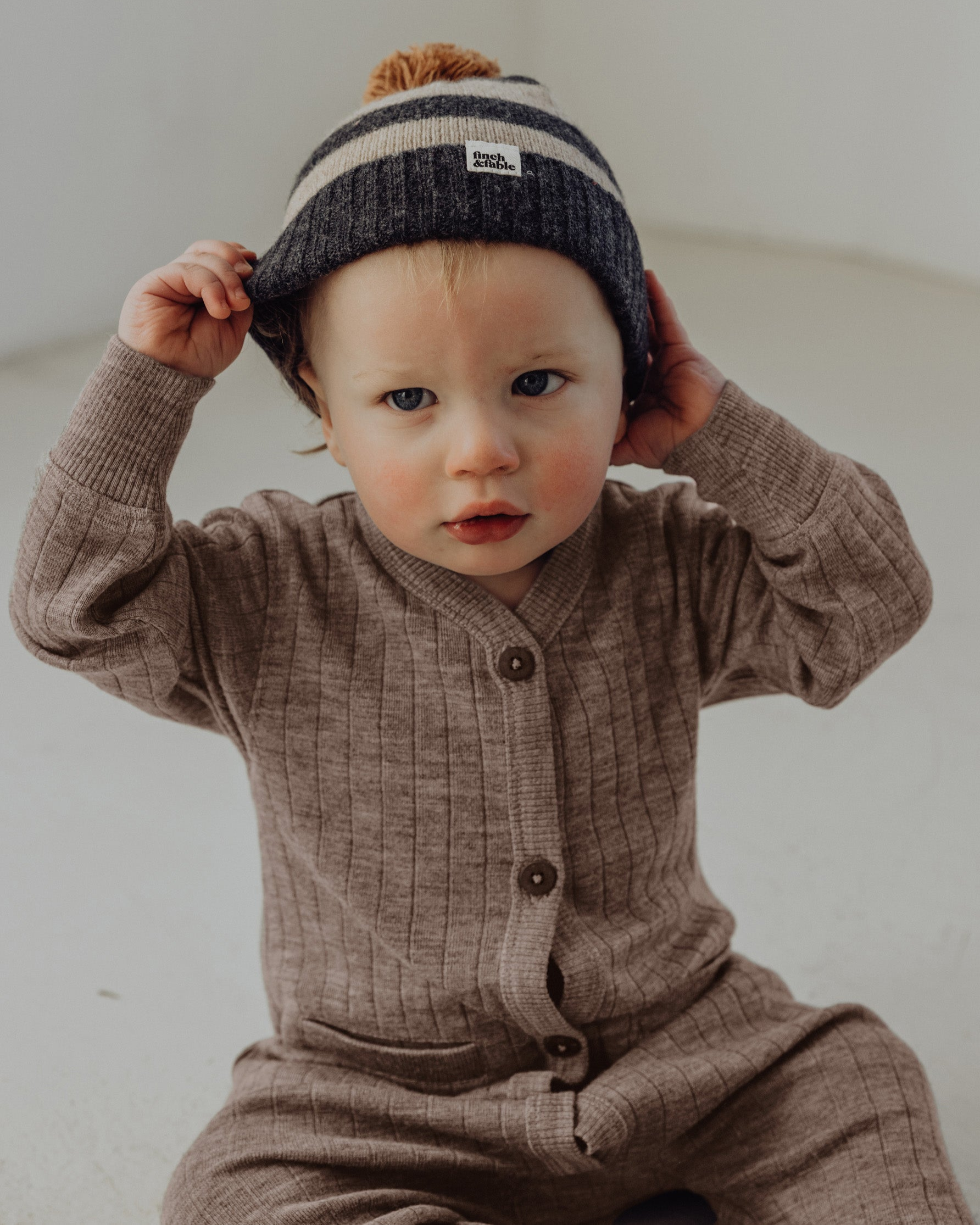 Wool Knitted Beanie - Stripe Storm
